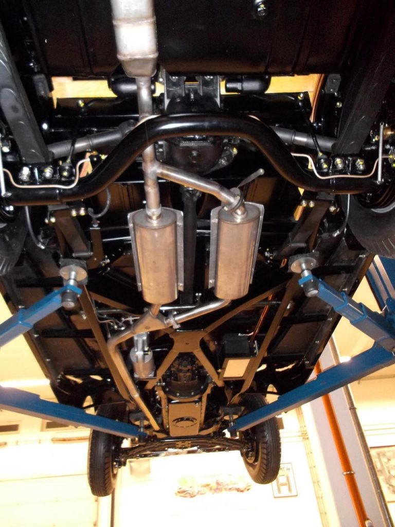 Suspension arrière indépendantes par essieu de Dion, reprenant les épures définies sur l’Auto-Union de course – demi-essieux à double joints homocinétiques