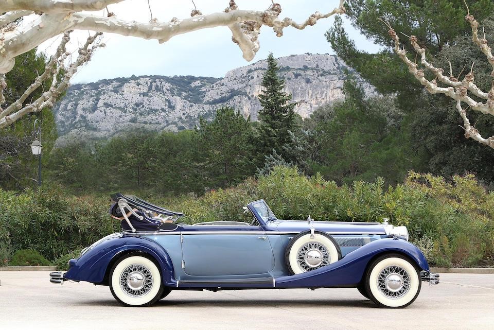 Spezial Roadster : Horch développe une version Sport pour concurrencer les 540 K Mercedes. Une maquette en bois de la Spezial Roadster sur empattement 3,45m aboutit à la réalisation d’un prototype dans les usines de Malan. Une production en série n’est pas envisagée car Horch prévoit un moteur compressé qui sera finalement abandonné. Un deuxième prototype est réalisé par le carrossier Erdmann & Rossi de Berlin, reprenant les lignes de la voiture usine avec des lignes plus fluides et des ailes ponton. Le Spezial Roadster est finalement fabriqué en 6 exemplaires jusqu’en 1938 sur cette base avec des modifications cosmétiques et d’aménagement intérieur.