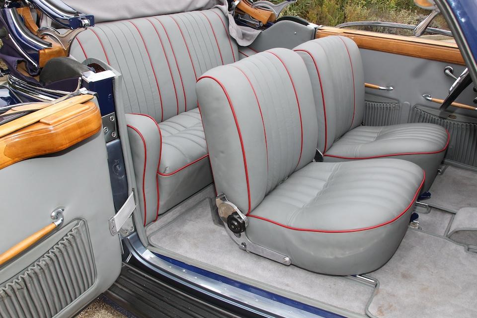 Recarrossée dans le style du coupé Manuela par Erdmann & Rossi, toit ouvrant Gülde, jeu de bagages, châssis raccourci, Bleu nuit, cuir noir.
