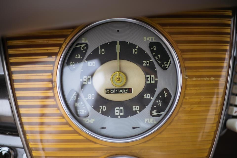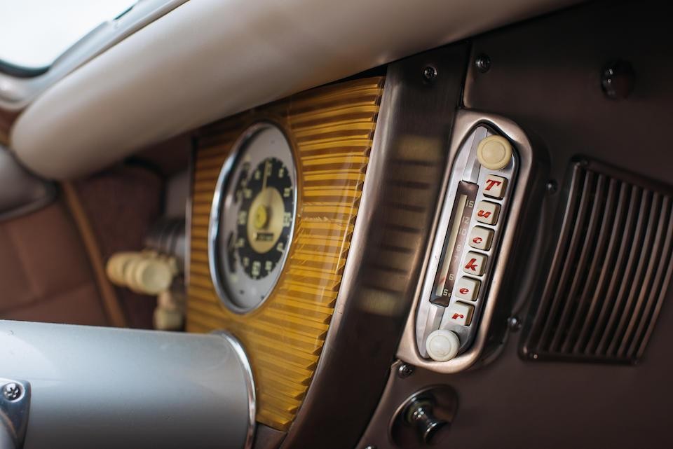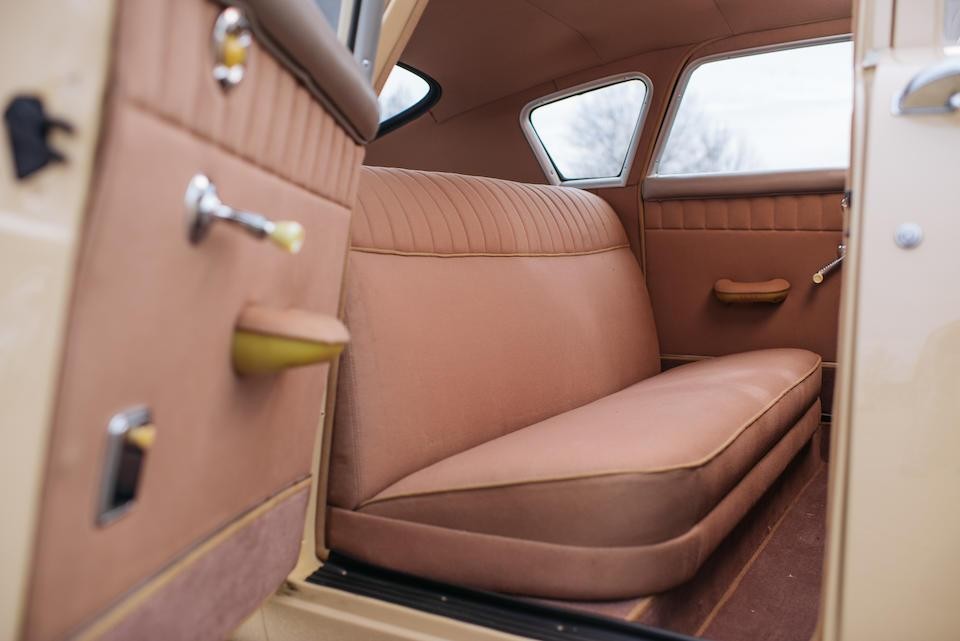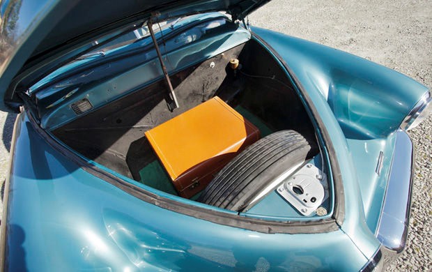 Traitement intérieur innovant avec bloc compteur autour duquel sont groupées les commandes principales, ensemble dans l’axe du volant faisant fonction de tableau de bord. Le reste de la planche de bord est constitué par une cloison garnie de moquette et surmontée d’un épais rembourrage. Nombreuses autres innovations : cellule photo-électrique pour passer de codes en phares en cas de croisement avec une autre voiture. Intérieur revu pour augmenter l’habitabilité, le confort et la sécurité : commandes essentielles regroupées derrière le volant pour un maniement rapide du bout des doigts ; pare-brise « Securit » conçu pour s’éjecter de lui même en cas de décélération trop brutale.
