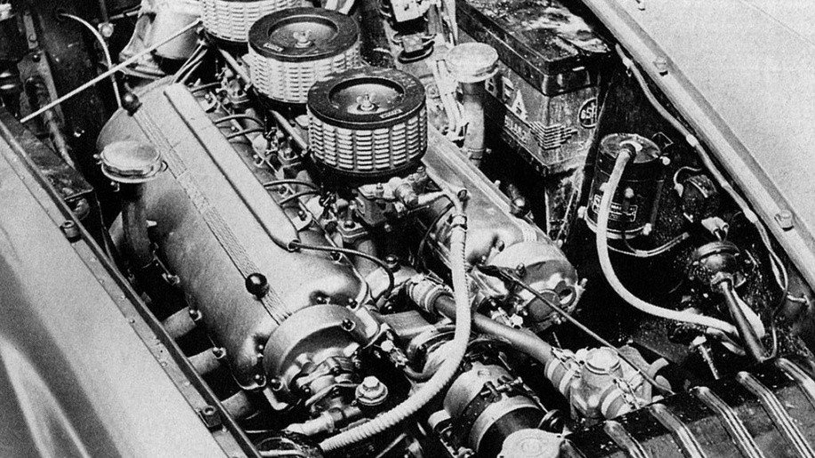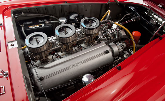 300 chevaux en version 340 Mille Miglia, allumage par 2 magnétos Marelli, alimentation par 3 carburateurs quadruple corps Weber 40 DCF/3, carter sec.