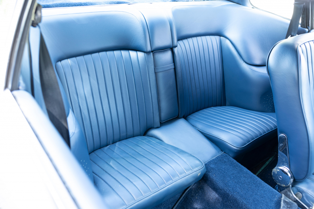 DBS/5199/L : 1969, DBS Vantage, 1/70, CAG, moteur 400/3739/SVC, boîte de vitesses manuelle, direction assistée, avertisseurs sonores Fiamm, phares antibrouillard et feux de route Marchal, climatisation Coolaire, radio Motorola, Jaguar Opalescent Blue, cuir rouge.
