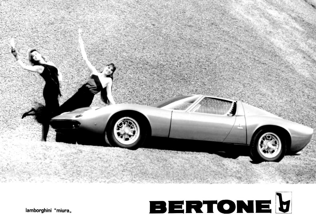 Le dessin de la carrosserie est confié à Bertone, plus précisément à son styliste Marcello Gandini (23 ans). Ce dernier procède à des modifications structurelles : empattement porté de 2,46 à 2,50m, redressement du radiateur d’eau de la position horizontale à la verticale pour dégager un espace pour la roue de secours et la batterie tout en favorisant la répartition des masses.