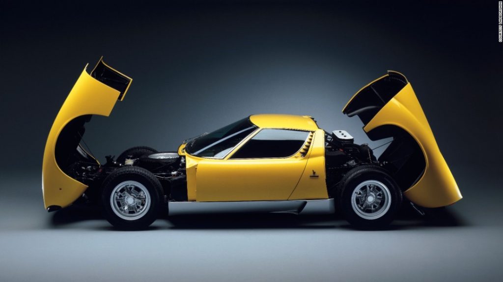 La présentation officelle à lieu au salon de Genève (CH) 1966 avec une voiture de couleur rouge orangé qui ouvrira aussi le GP de Monaco en 1966 pilotée par Bob Wallace. Le nom est trouvé par Ferruccio Lamborghini qui veut rappeler son signe zodiacal en choisissant un nom de taureau de combat : Miura P400 (les Miura sont des taureaux de combat espagnols réputés élevés par Don Eduardo Miura).