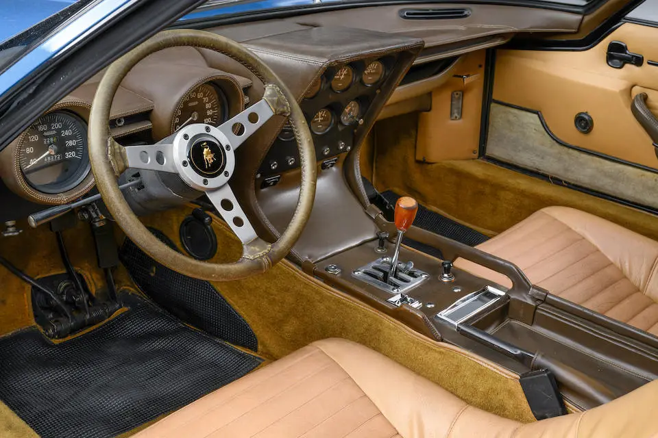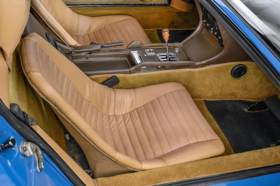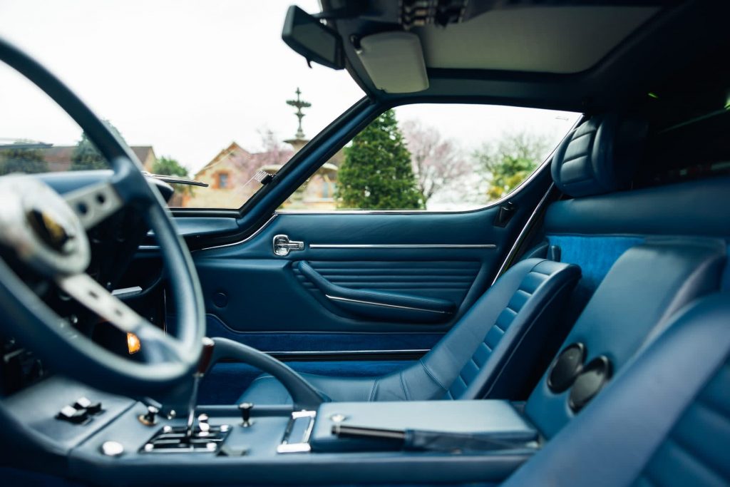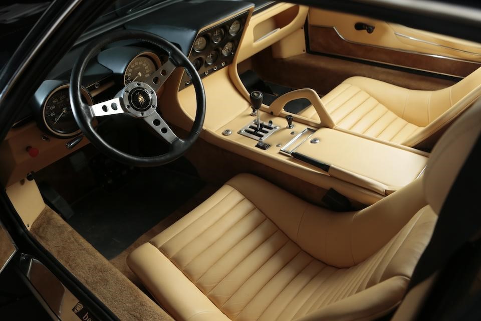 3769 : 1968, P400, moteur 2448, châssis renforcé, Blu Miura, cuir Gobi (beige).