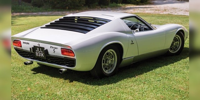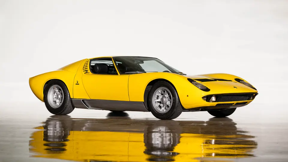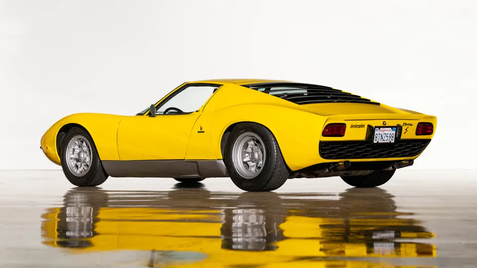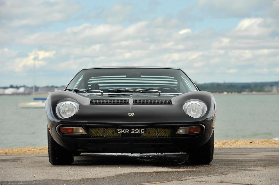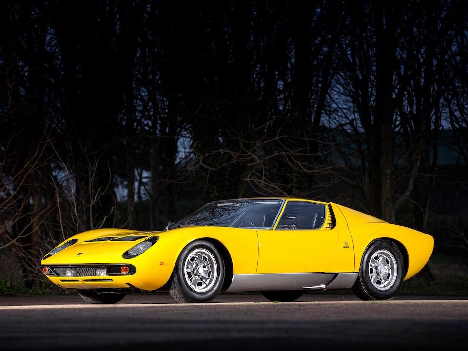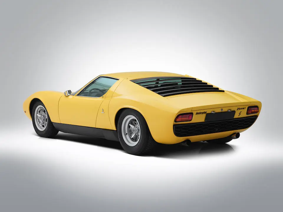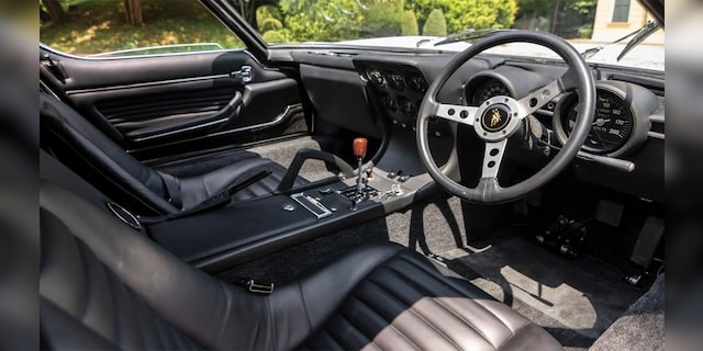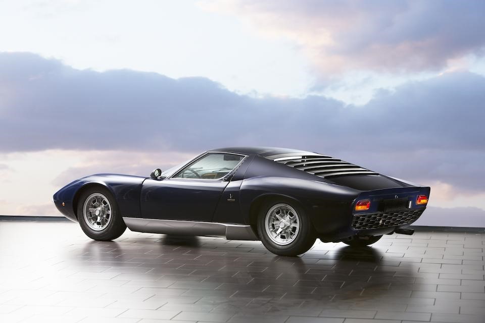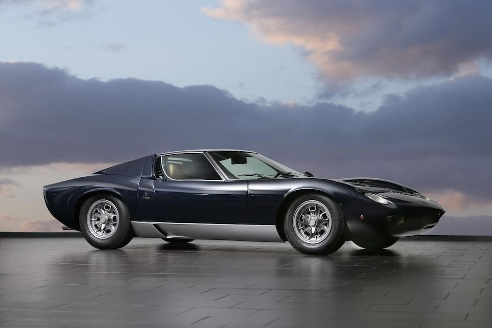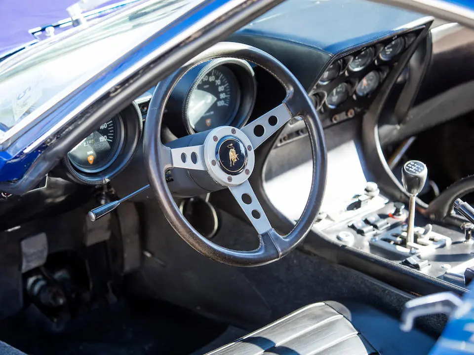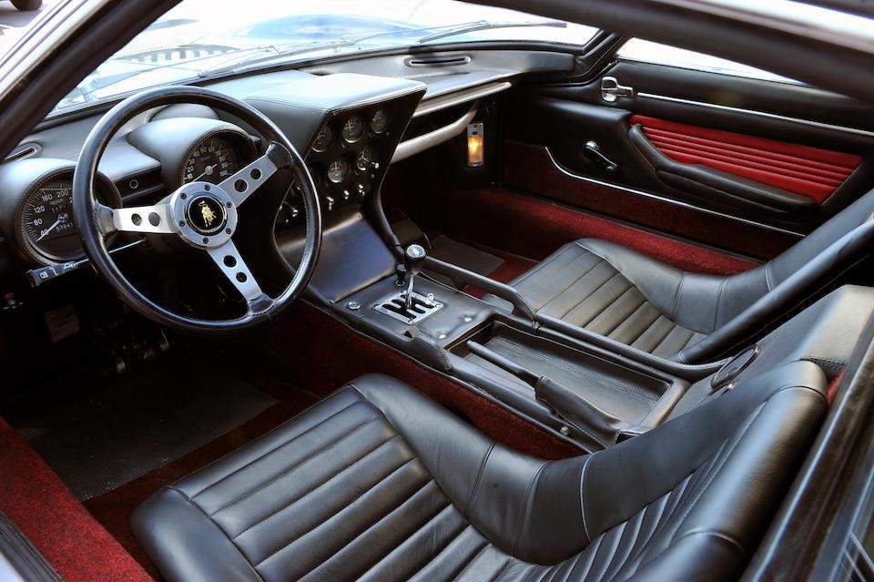 4976 : 1971, P400 SV, moteur 30698, jantes dorées, climatisation Borletti, radiocassette, ceintures de sécurité, Argento Indianapolis Metallizzato, cuir noir.