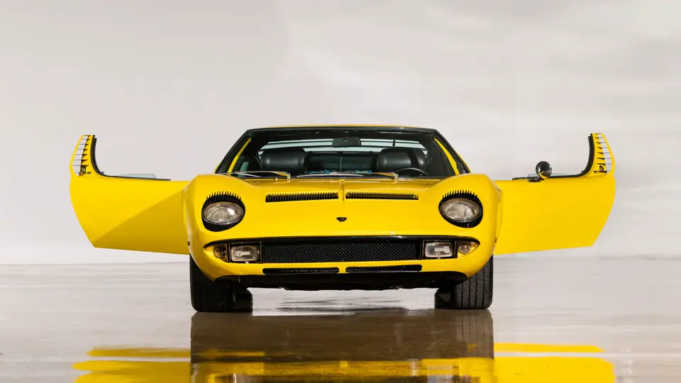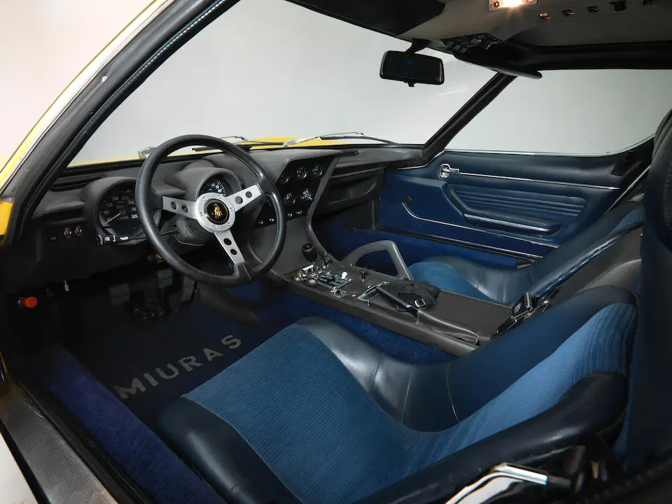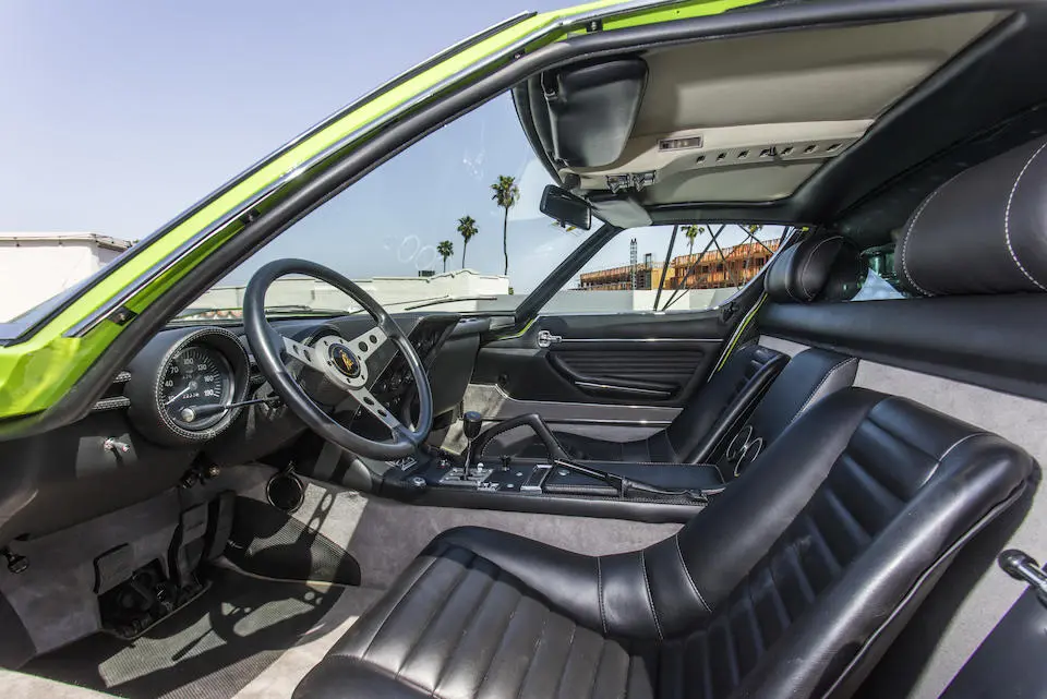 3799 : 1968, Miura P400 S, moteur 2529, Verde Miura, simili et velours Senape.