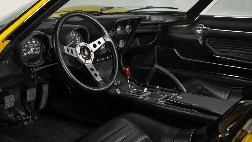 4926 : 11/1971, P400 SV, moteur 30689 avec carter d’huile en 2 parties des modèles suivants, climatisation, Giallo Sole, cuir Nero.