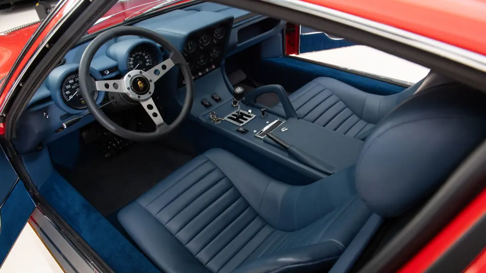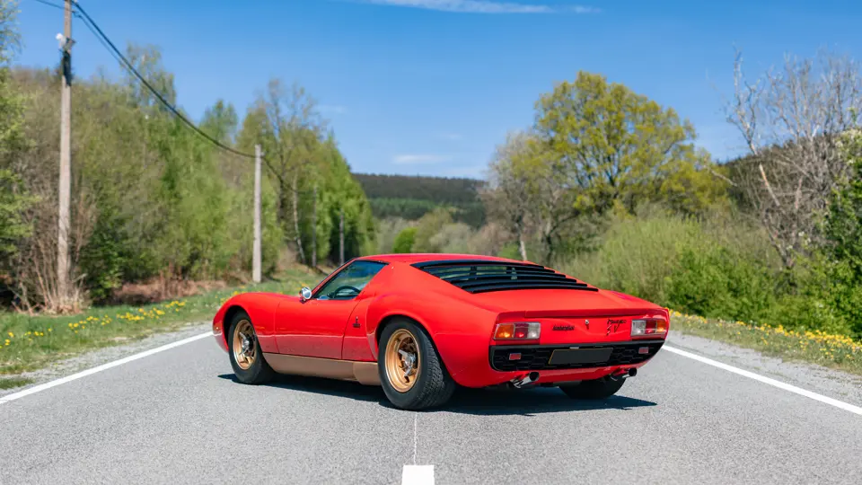 4946 : 1971, Miura SV (caisse 775), moteur 30680, climatisation, Rosso Corsa, intérieur Blu.