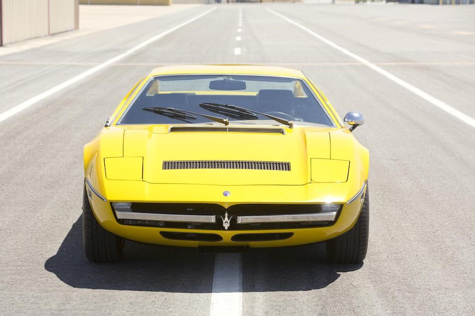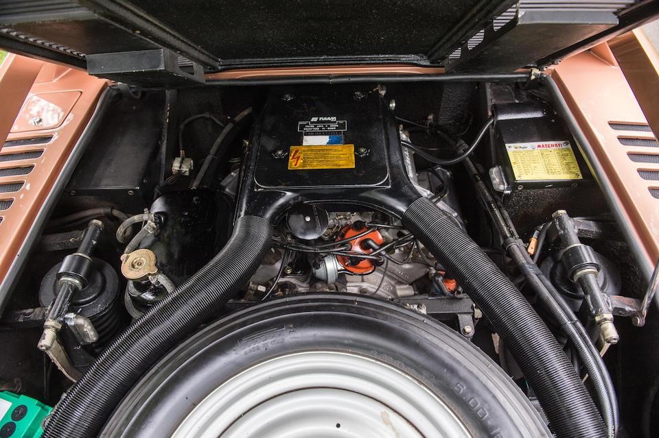 Le V6 est dérivé du V8 ouvert à 90° pour avoir un moteur très court. Sa fonderie est réalisée en alliage léger, avec des culasses à turbulence orientée, et le poids est contenu à 140 kg. La partie inférieure du bloc cylindre fait office de chapeau de palier de vilebrequin (ce qui améliore la rigidité) et les tolérances consenties sont très faibles : 3/100e. Les 1140 pièces de cet ensemble sont assemblées en 3 heures par une équipe de 12 personnes. L’ensemble est étudié par l’ingénieur en chef Maserati Giulio Alfieri.