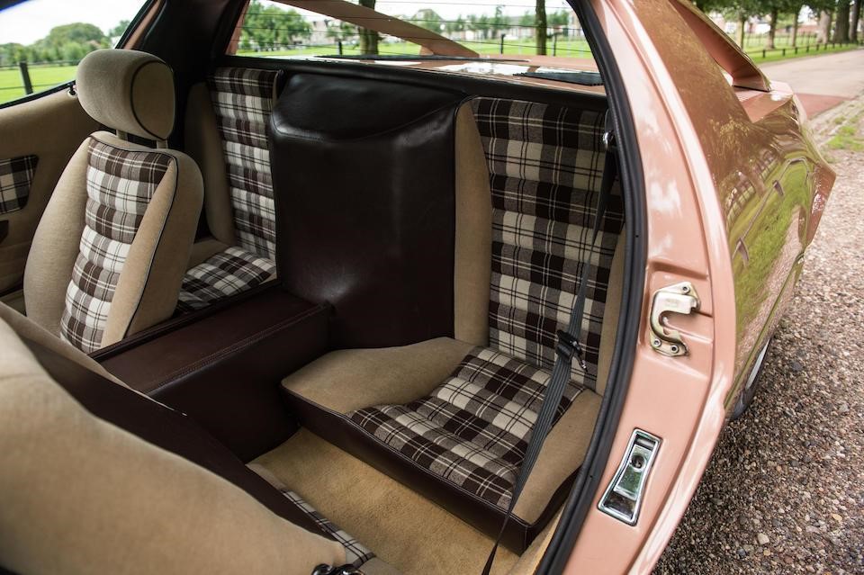 Nouveau tableau de bord avec cadrans principaux ovales, sièges recouverts de tissus écossais.