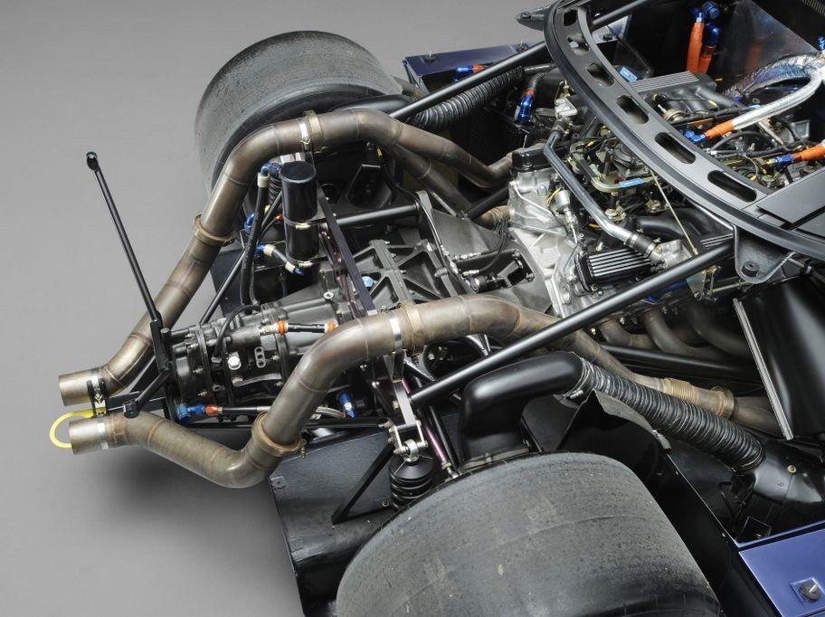12 cylindres en V ouvert à 60° dérivé des voitures de groupe C entièrement en alliage léger positionné longitudinalement au centre devant l’axe des roues arrières. Le moteur est fixé sur la paroi pare-feu et participe donc à la rigidité de l’ensemble. La cylindrée est réduite de 7 à 6 litres.