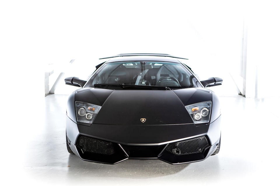 ZHWBE37507LA02569 : 2008, Murcielago LP 640-4 Versace E Gear Coupé 9e/20, Nero Aldebaran, logo Versace blanc sur les portes,
