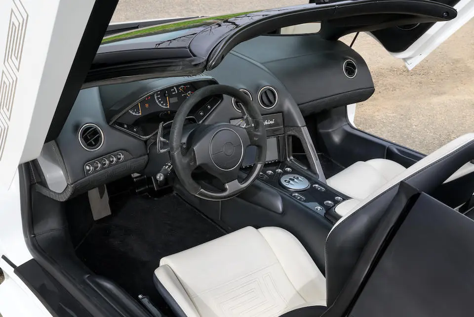 ZHWBE47S08LAO3283 : 2008, Murcielago LP640 Roadster Versace, 1ère/20, montants de pare-brise, jantes, coques de rétroviseurs extérieurs, inserts noirs, Bianco Isis, cuir Noir/Ivoire.