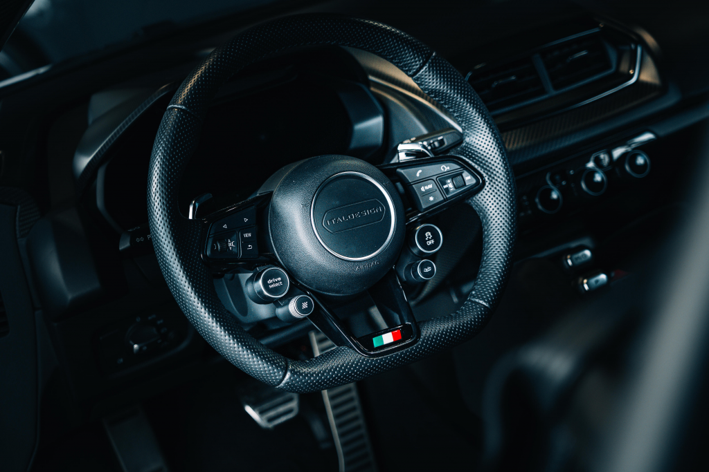 Mécanique V10 de 5,2 litres de l’Audi R8 et de la Lamborghini Huracan en position centrale arrière.