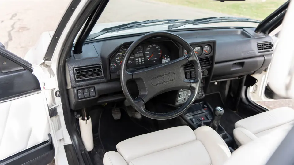 WAUZZZ85ZFA900517 : 1984, Quattro, toit ouvrant, climatisation, Alpinweiss, cuir noir.