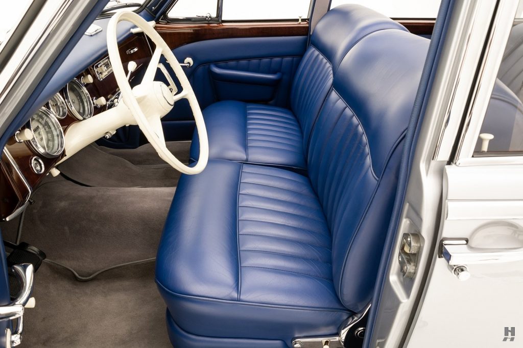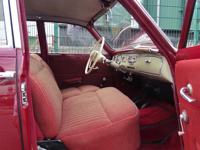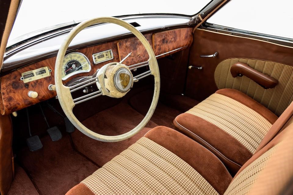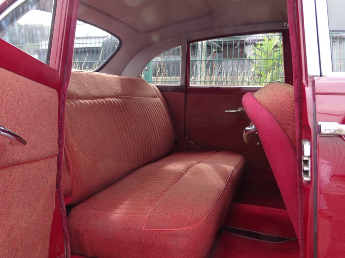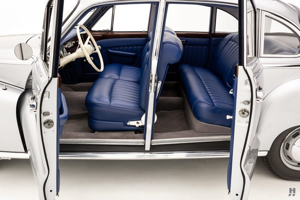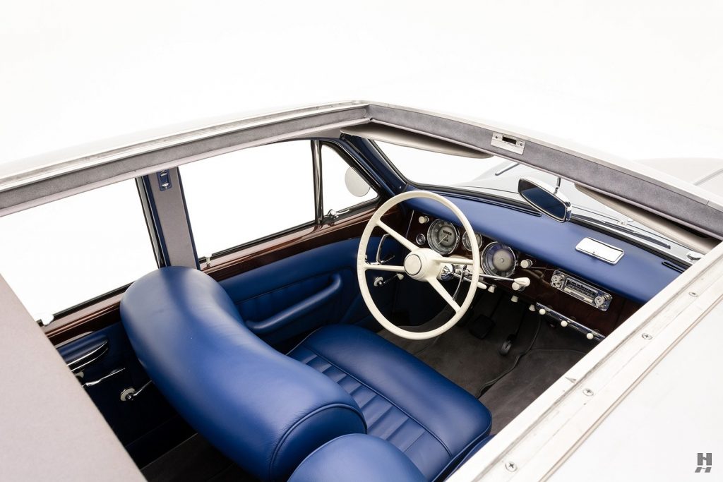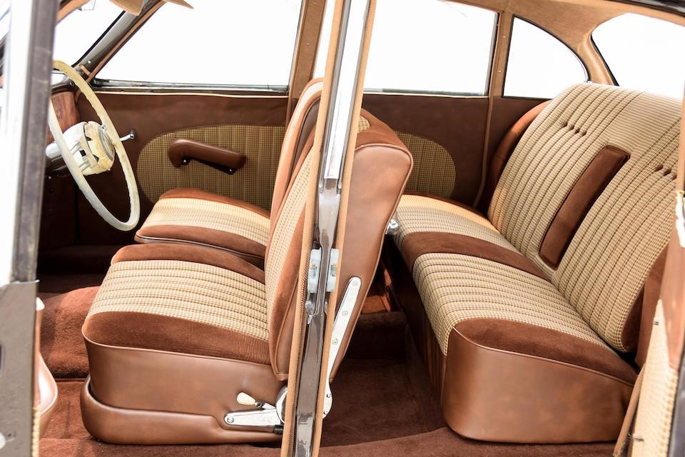 Finition luxueuse avec sièges Dunlopillo, radio Becker Monaco 1 avec antenne escamotable positionnée dans l’aile ARG, chauffage-ventilation et boîte à gant fermant à clé.