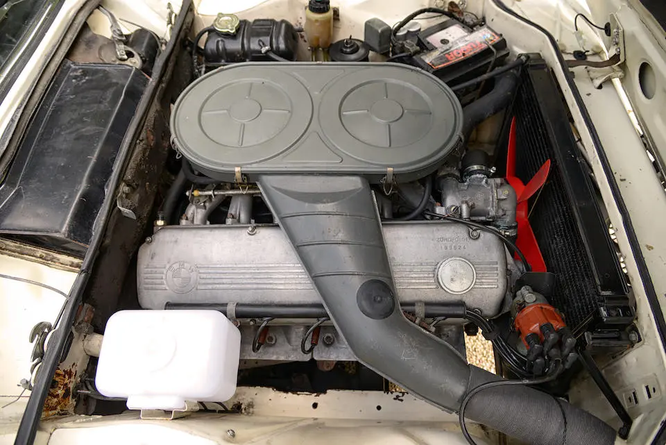 2000 CS : Taux de compression : 9,3 :1, 2 carburateurs double corps Solex 40 PHH, pompe à essence mécanique, 120 chevaux DIN à 5600 tours et 17 Mkg à 3600 tours.