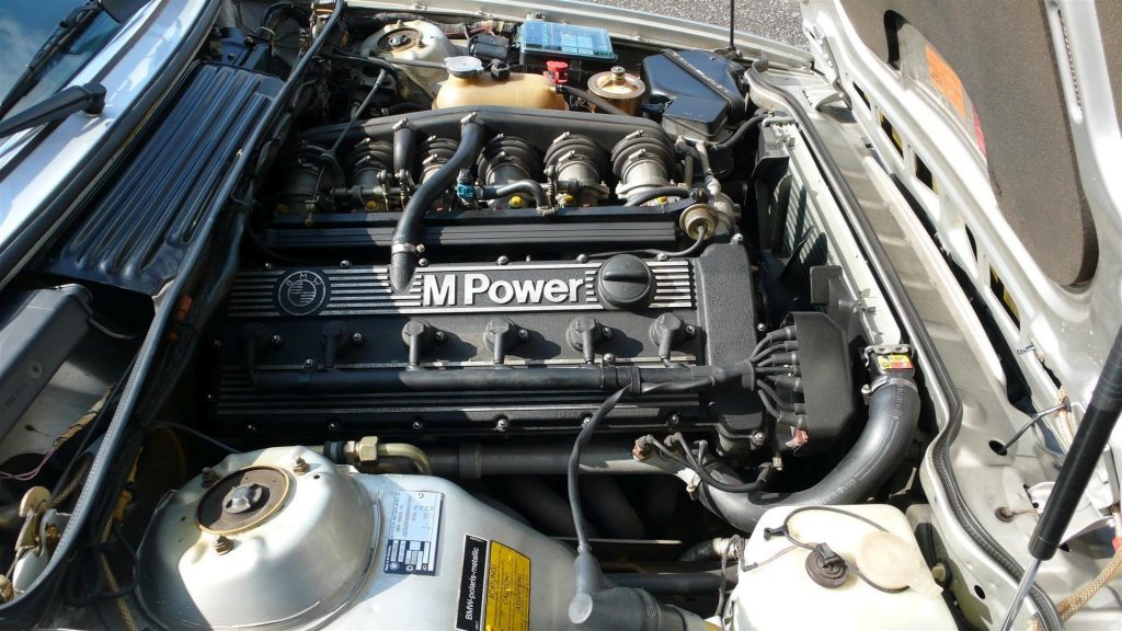 05/1984 : Présentation de la M635 CSi, avec le moteur double arbres à cames en tête et 4 soupapes par cylindre repris de la M1. Bloc fonte, culasse spécifique en alliage léger dérivée de l’Apfelbeck des 3,0 CSL peinte en noir.