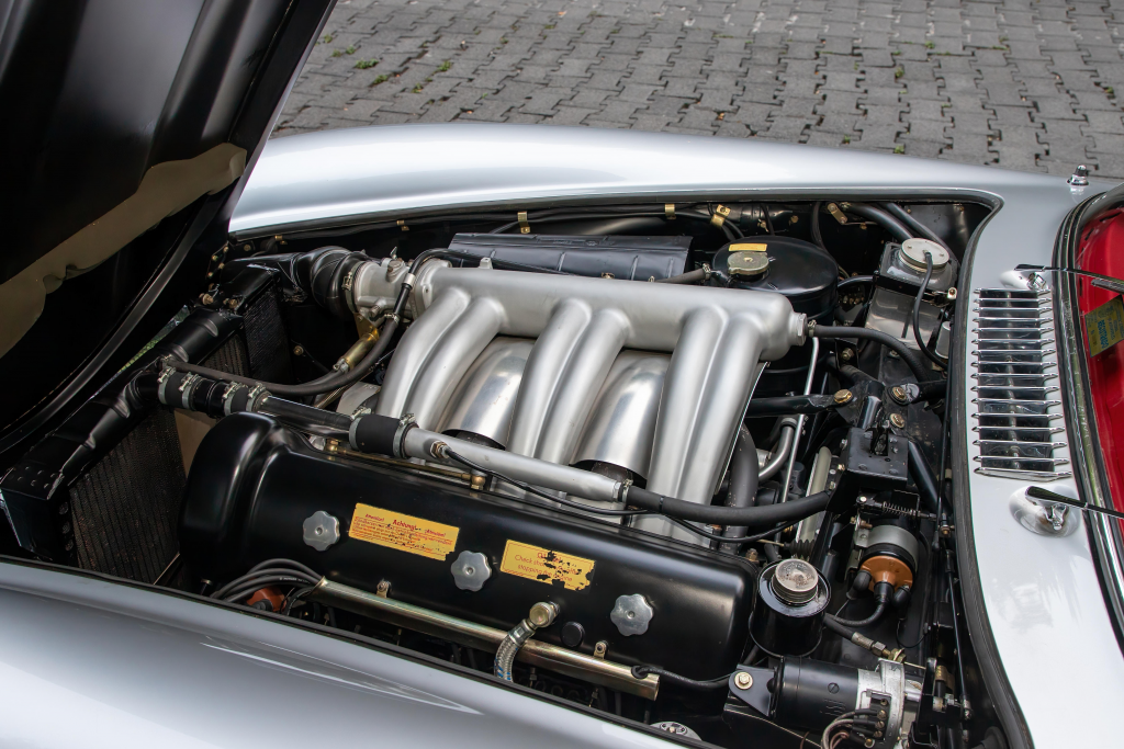 Moteur d’abord avec 3 carburateurs Weber en place des Solex, 186 chevaux à 5600 tours puis injection directe mécanique, 217 chevaux à 5750 tours, taux de compression 8,7 :1.