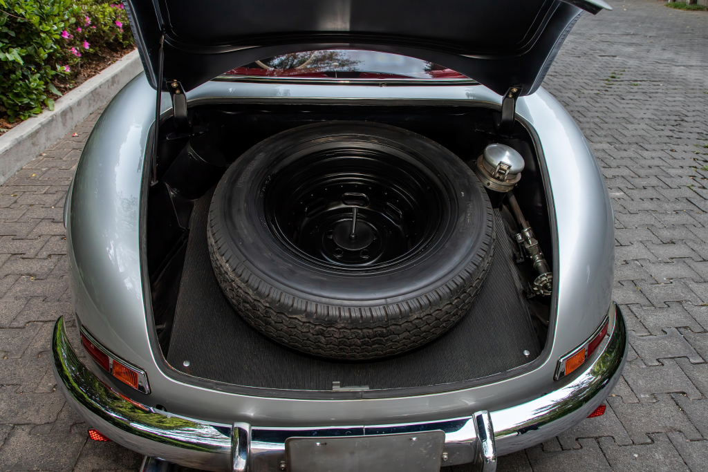 Boîte de vitesses à 4 rapports Mercedes-Benz (origine : berline 300) avec système de lubrification issu de la compétition. Pompe de pression entraînée par l’arbre primaire. Levier de vitesses au plancher.