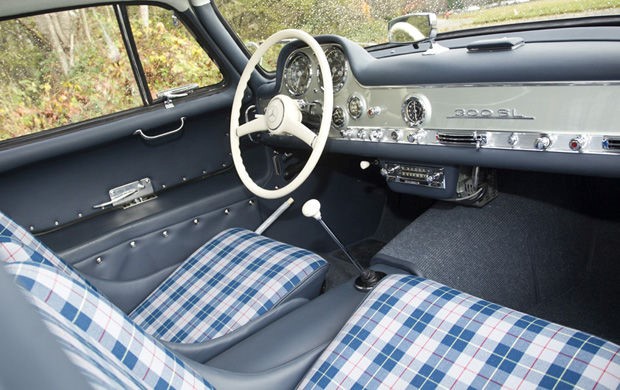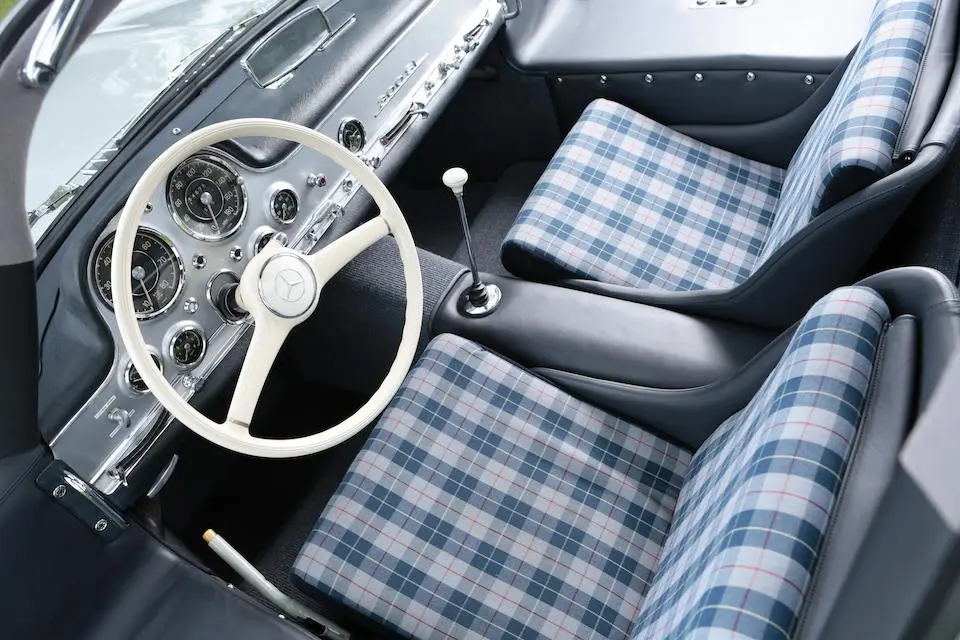 5500208 : 27/05/1955, 300 SL caisse aluminium, gris argent, tissu écossais.