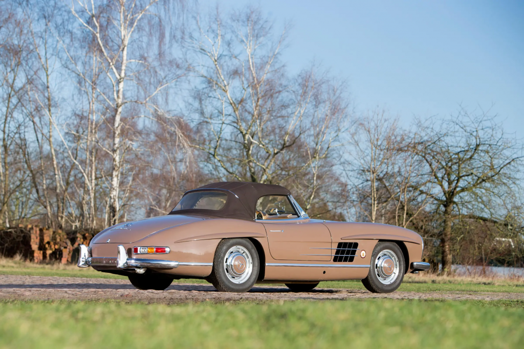 198.042.10.002539 : 1960, 300 SL Roadster, moteur 198.980.10.002544, freins à disques, radio Becker Mexico, Marron, cuir beige.