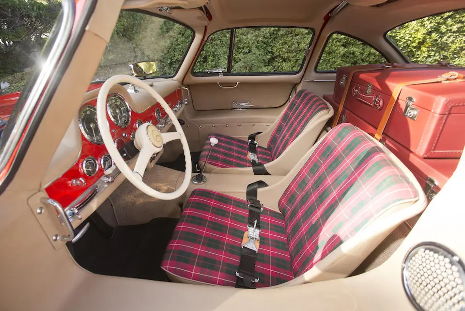 5500545 : 1955, 300 SL, rapport de pont : 3,42 :1, plaques export, Feuerwehrrot (DB 534), sièges tissu écossais L2.