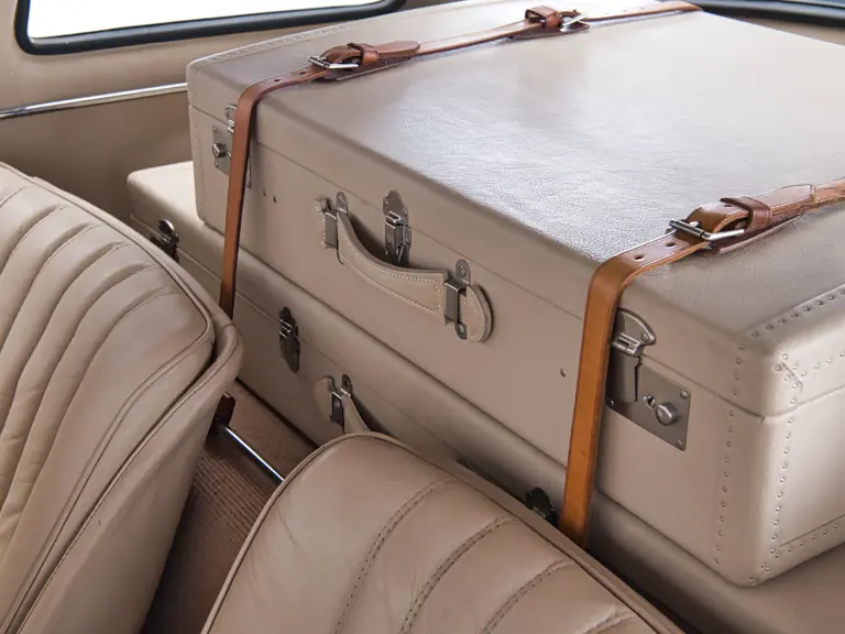 5500872 : 12/01/1956, caisse aluminium, moteur 198.980.5500868, boîte de vitesses 5500854, boîtier de direction 5500891, pont 5500418, suspensions sport, rapport de pont : 3,42 :1, jantes à moyeux Rudge, lave-glace, Schwartz (DB40), cuir rouge (1079).