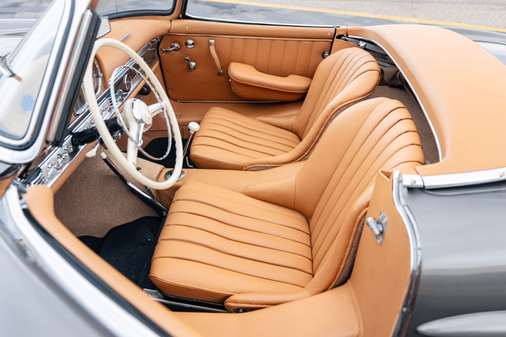 198.042.85000302 : 1958, 300 SL Roadster, Gris clair (DB 158), cuir noir.