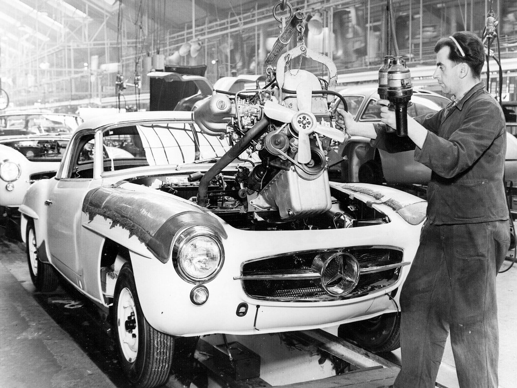 La 190 SL apparait au Salon de New-York en février 1954 sous forme de prototype de présérie, en même temps que la 300 SL et s’adresse en priorité au marché américain.
