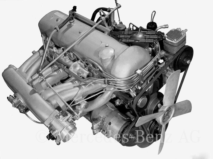 Reprend la motorisation de la 300 à 6 cylindres en ligne entièrement en alliage léger, Typ M 189 III.