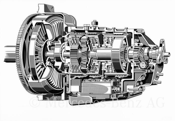 L’embrayage fait appel à un mécanisme hydraulique Hydrak mono-disque à sec et non à un convertisseur de couple comme pour les modèles précédents. L’embrayage est positionné devant la boîte de vitesses planétaire qui tient compte du régime moteur et de la vitesse du véhicule.