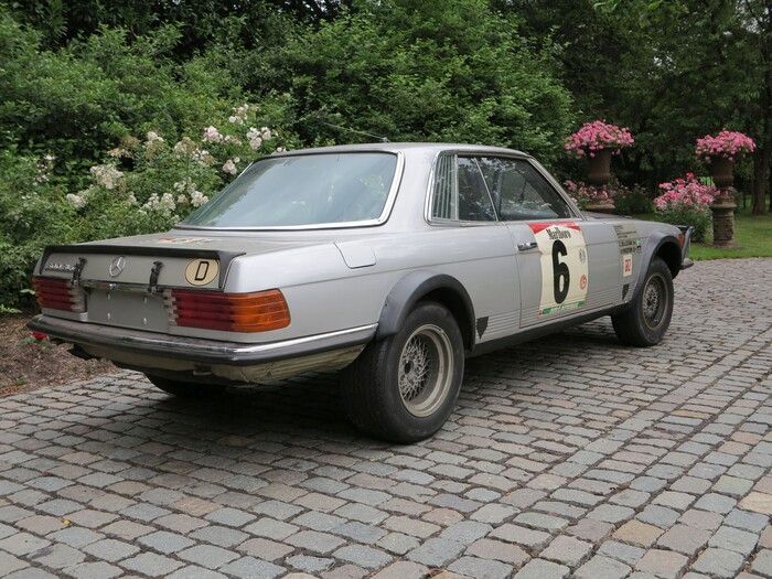 10702612000630 : 1979, 450 SLC 5,0l, 1/5 préparées pour le rallye par le département Versuchabteilung, moteur 330 ch, admission revue, radiateur spécial, 2 batteries allégées, réservoir 120 litres en en fibre de verre avec double circuit, arceau-cage, barre de protection avant, soubassement caréné et renforcé, suspension renforcée, disques de frein agrandis, répartiteur de freinage avec commande à main, frein à main hydraulique, lave-glace spécial avec gros réservoir d’eau, crics spéciaux, volant spécial, intercom, sièges baquets OMP, aération renforcée.
