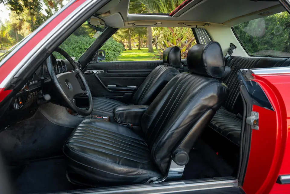 WDB10702612001525 : 1980, 450 SLC 5,0 l, toit ouvrant électrique, Rouge, cuir noir.