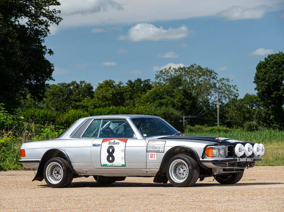 10702612000626 : 02/02/1979, 450 SLC 5,0l, 1/5 préparées pour le rallye par le département Versuchabteilung sous la direction du Dr Erich Waxenberger, moteur 330 ch, admission revue, radiateur spécial, 2 batteries allégées, réservoir 120 litres en en fibre de verre avec double circuit, arceau-cage, barre de protection avant, soubassement caréné et renforcé, suspension renforcée, disques de frein agrandis, répartiteur de freinage avec commande à main, frein à main hydraulique, lave-glace spécial avec gros réservoir d’eau, crics spéciaux, volant spécial, intercom, sièges baquets OMP, aération renforcée.
