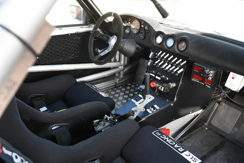 10702612000836 : 1980, 450 SLC 5,0l, ½ préparée pour le rallye par le département Versuchabteilung, moteur 330 ch, admission revue, radiateur spécial, 2 batteries allégées, réservoir 120 litres en en fibre de verre avec double circuit, arceau-cage, barre de protection avant, soubassement caréné et renforcé, suspension renforcée, disques de frein agrandis, répartiteur de freinage avec commande à main, frein à main hydraulique, lave-glace spécial avec gros réservoir d’eau, crics spéciaux, volant spécial, intercom, sièges baquets OMP, aération renforcée.
