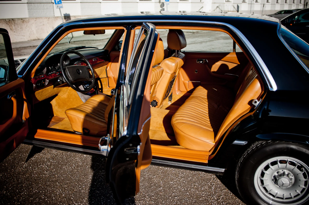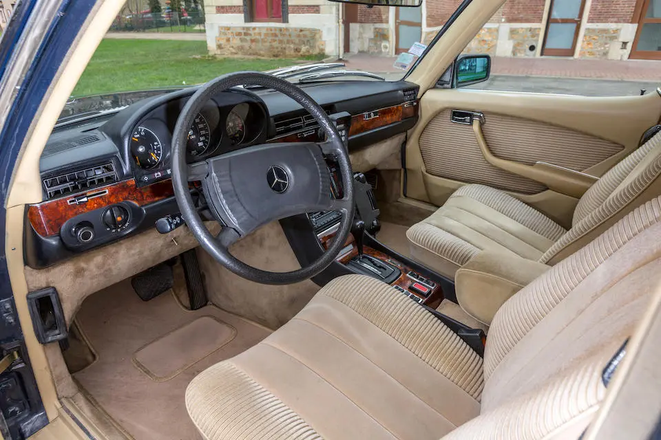 116.033.12092089 : 1979, 450 SEL, toit ouvrant électrique, sièges chauffants av./arr., cuir havane.
