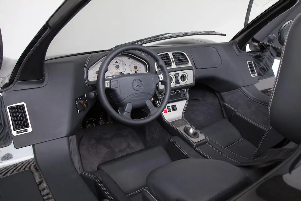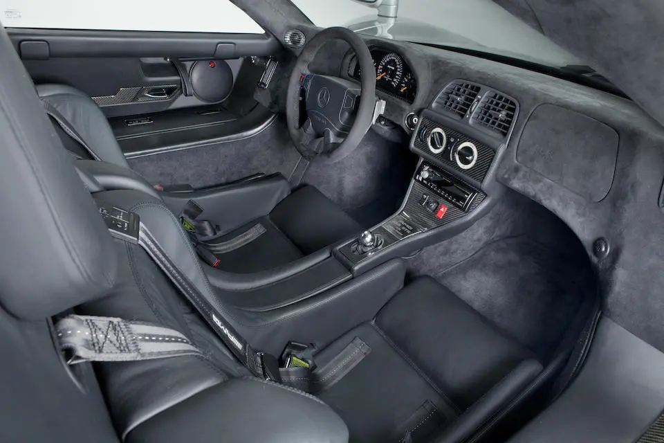 WDB2973971 Y000012 : 1998, ½ modifiées par HWA, moteur V12 7,3 litres de 720 chevaux DIN, 1ère voiture complétée, badges Supersport, Rouge, cuir naturel, bagages spécifiques (2 pièces), kit de secours, extincteur Mercedes-Benz, chargeur de batterie, gonfleur de roue de secours,