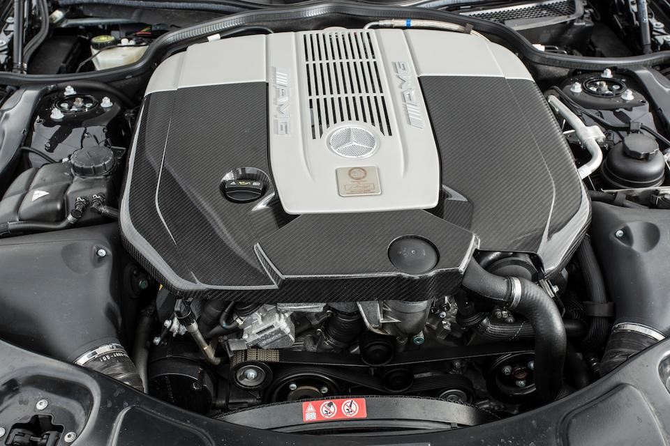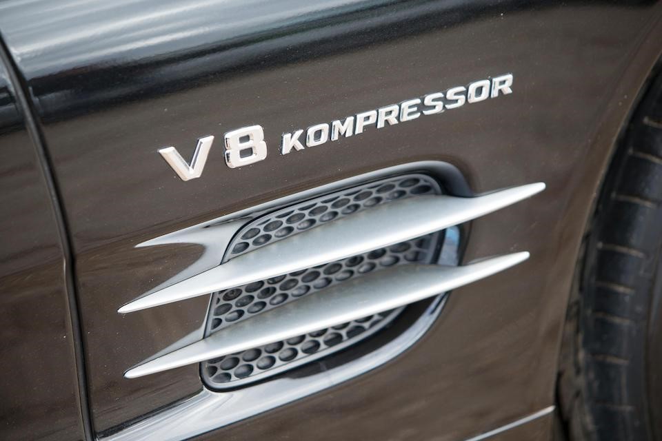 SL 55 AMG : Même base mécanique, carter de vilebrequin agrandi et nervuré, nouvelle pompe à huile, nouvelles bielles. Diagramme de distribution avec soupapes sur ressorts doubles à temps d’ouverture augmenté. Cartographie modifiée. Suralimentation par un compresseur positionné au centre du V, pression maximale 0,8 bar.