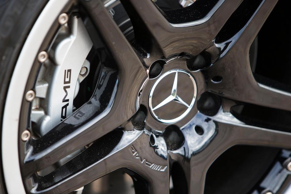 Disques ventilés et perforés en composite, D.390/360mm, étriers fixes 6/4 pistons. Jantes spécifiques AMG 9 ½ J19/11 ½ J20, pneus 265-35R19/325-30R20, voies : 1,666/1,639m (av./arr.) ; 1870 kg.
