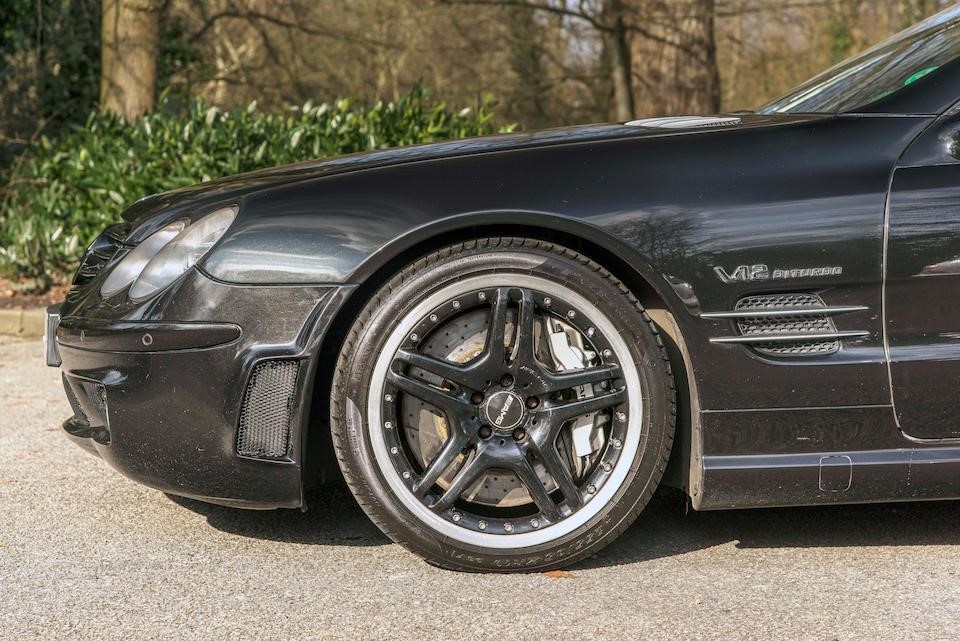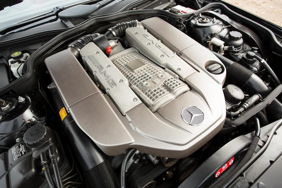 01/2003 : SL 600 : Moteur V12 M275 de 5,5 litres ouvert à 60° entièrement en alliage léger. Vilebrequin sur 7 paliers. Distribution par un arbre à cames en tête par banc de cylindres entraîné par chaîne Duplex et 3 soupapes par cylindre, 2 d’admission et 1 d’échappement commandées par basculeurs avec rattrapage de jeu hydraulique, admission variable. Double allumage avec 2 bougies par cylindre positionnées sur les bords des chambres de combustion et allumage décalé. Suralimentation par 2 turbocompresseurs avec échangeur air/eau. 5513 cm3 (82×87), taux de compression : 9,0 :1, 500 chevaux DIN à 5000 tours, 800 Nm constant entre 1800 et 3600 tours.