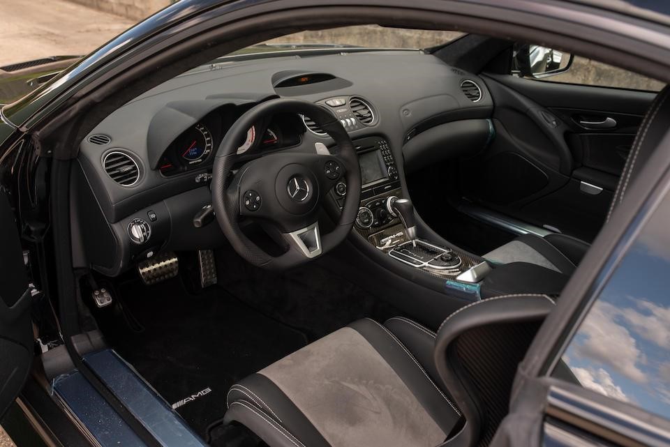 Intérieur cuir Napa bicolore, sièges rouges, ciel de toit garni alcantara, inserts aluminium sur le tableau de bord et la console, logo Mille Miglia sur les appuie-têtes, système Comand et Park Assist de série, chargeur CD et système audio spécifique. 12 exemplaires fabriqués.