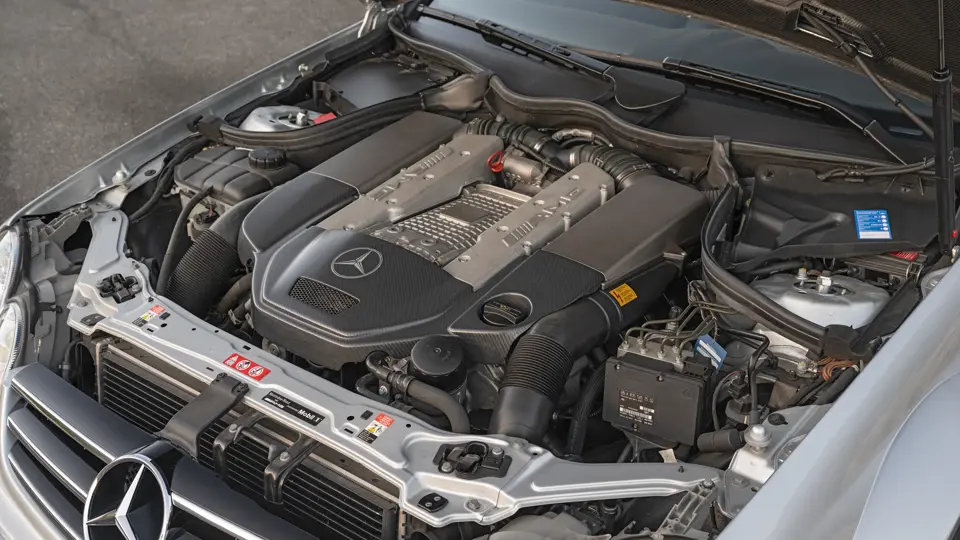 2006 : Version CLK 63 AMG disponible en coupé et en cabriolet : Nouveau moteur V8 6,2 l étudié par AMG utilisant la technique Closed deck (le haut des cylindres n’est percé que de quelques ouvertures pour consolider les chemises. Mercedes utilise aussi un nouveau système de soudure par électrofusion d’un alliage ferreux contenant du carbone et d’aluminium pour les parois de cylindre, les rendant beaucoup plus lisses améliorant ainsi la lubrification La partie inférieure du cylindre pénètre dans le carter de vilebrequin ou elle est renforcée par des éléments en acier et la base est vissée sur une plaque en fonte d’aluminium reliant les 5 supports de paliers de vilebrequin inférieurs en leurs donnant une forme en échelle, le carter de vilebrequin se situant en dessous. Le vilebrequin sur 5 paliers (poids 23 kg) formé d’acier au chrome molybdène forgé et reçoit des contrepoids d’équilibrage, de même que les bielles équilibrées (607 gr), pistons légèrement bombés. Distribution par 2 arbres à cames en tête entraînés par chaîne duplex, 4 soupapes par cylindre, en V (admission 40mm, échappement 33mm) formant un angle fermé actionnés par poussoir en place des culbuteurs. Tubulures d’admission de longueur variable par montage de clapets (D.65mm) s’ouvrant à pleine charge. Echappement 4 sorties (2 sur le cabriolet).