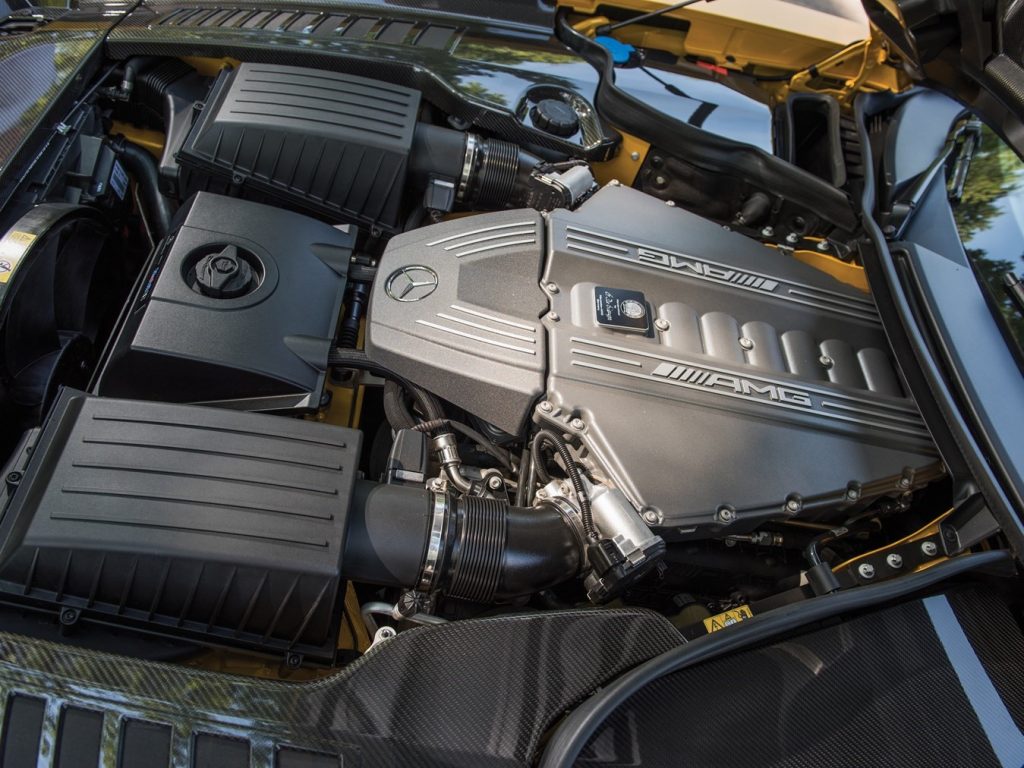 Moteur 6,2 l préparé par AMG développant 591 chevaux à 6800 tours pour 650 Nm obtenus à 4750 tours.