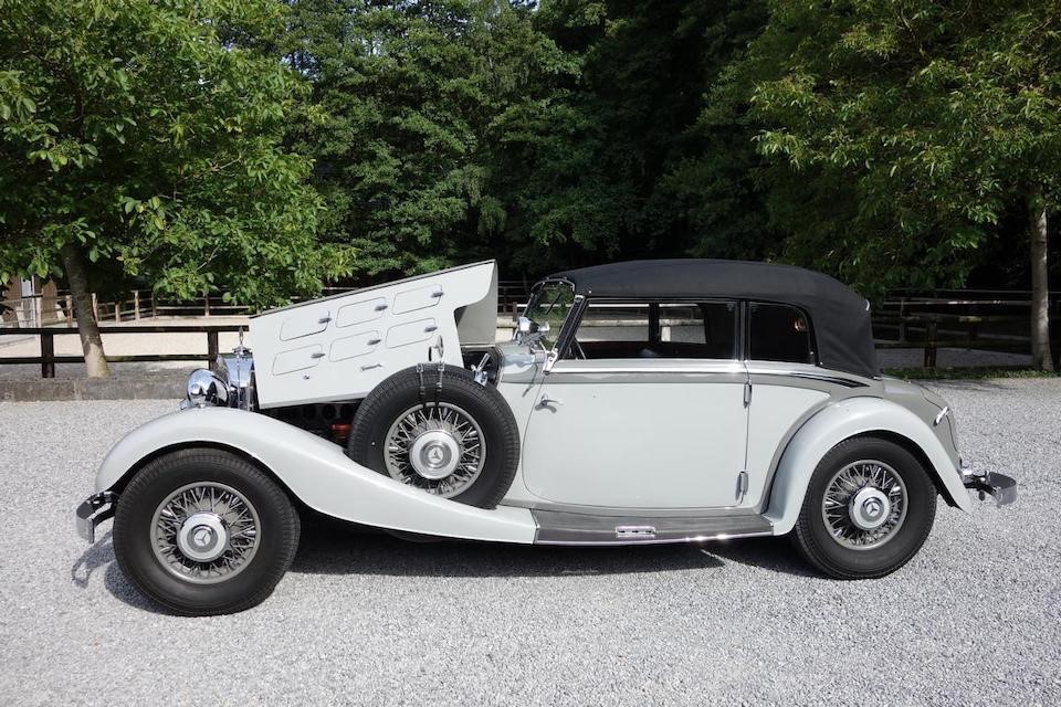 08/1934 : Mercedes étudie une version longue sur empattement 3,88m avec suspension arrière par essieu de Dion et moteur 540K. 1 prototype et 4 voitures carrossées en torpédo tourer par l’usine (Sindelfingen et Mannheim) sont fabriquées, les torpédos sont livrés à la chancellerie du reich à Berlin (D).