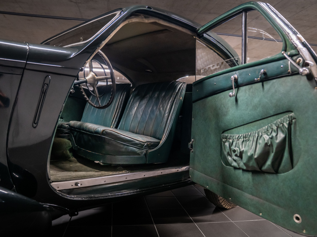 113.718 : 1935, Special Coupé usine, caisse unique, boîte de vitesses 26507, Marron, cuir brun.