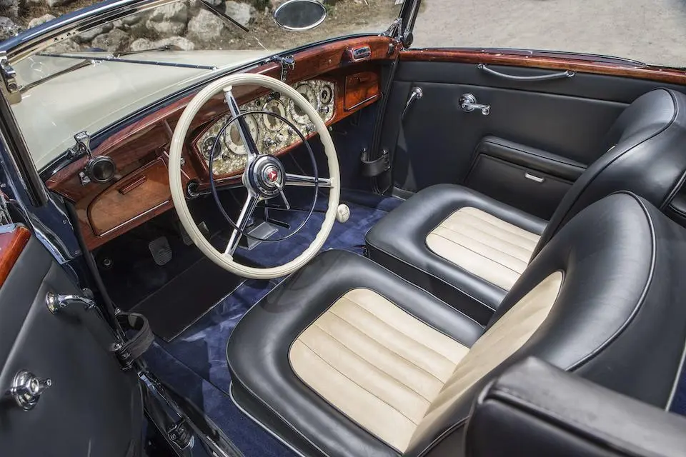 130.913 : 1936, 540 K, Spezial Cabriolet usine (caisse 200338), Noire, capote noire, cuir noir.