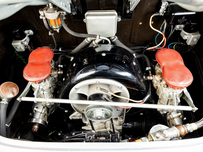 1959 : Carrera 1600 GS : moteur type 692/3 de 1587 cm3 (87,5×66), base mécanique des Carrera 1500 avec vilebrequin Hirth et bielles sur rouleaux, 2 radiateurs d’huile à commande thermostatique positionnés derrière les ouïes des avertisseurs sonores sous les phares, carter d’huile agrandi. Distributeur entraîné directement par le vilebrequin et non plus par l’arbre à cames comme sur les spyders RS de compétition, taux de compression : 9,0 :1, 115 chevaux DIN à 6500 tours (les versions compétition développent 141 chevaux à 6500 tours).