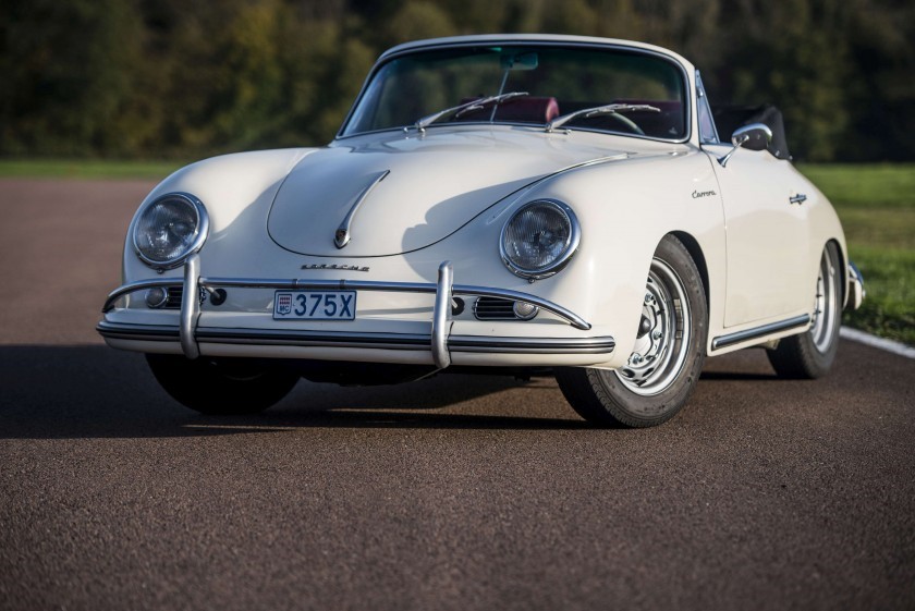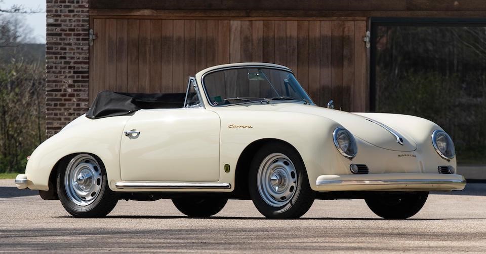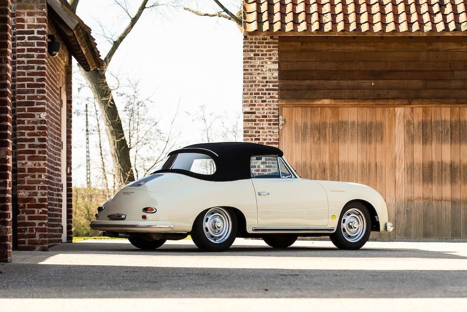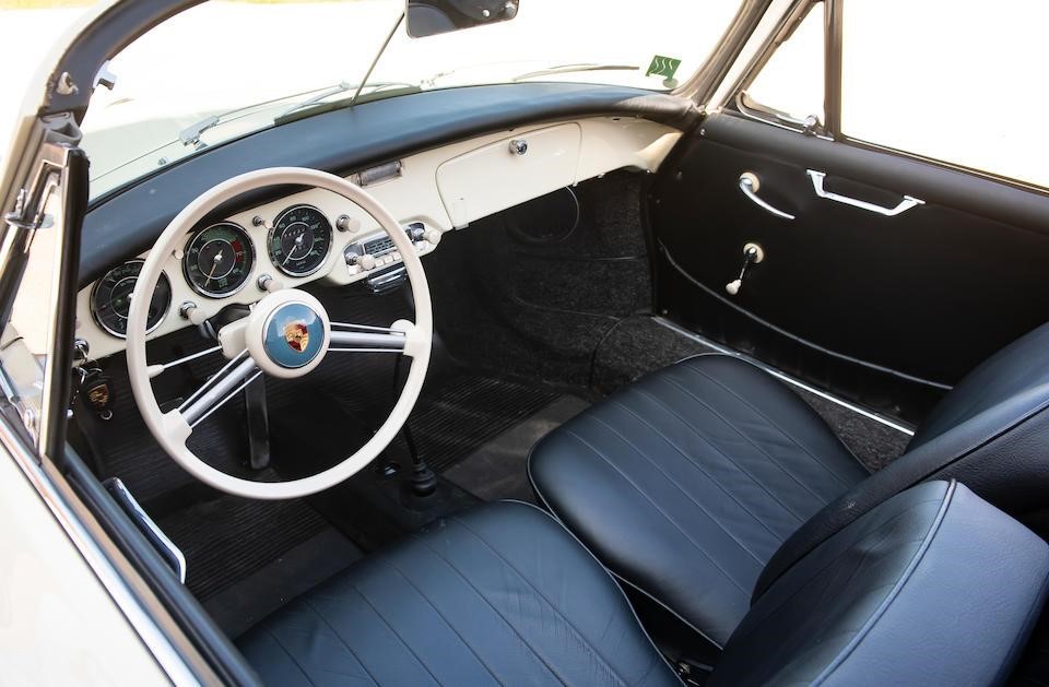 150484 : 06/1958, 356 A Carrera T2 1500 GS Cabriolet, moteur 547/1 n°90943, 1/5 T2 avec ce moteur, jantes à fixation centrale, pare-chocs US, porte bagages, rétroviseur d’aile, rétroviseur intérieur amovible, radio Blaupunkt Bremen, Elfenbein (ivoire), intérieur noir.